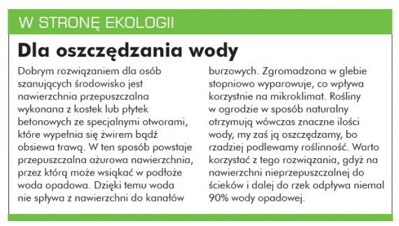 Oszczędności energii służą bramy garażowe o wysokich parametrach termoizolacyjnych. Można kupić bramy z naświetlami, dzięki czemu garaże są także doświetlane światłem naturalnym. Coraz częściej w ogrodach stosujemy lampy solarne, które nie wykorzystują energii elektrycznej.