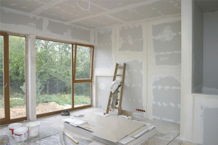 W starych mieszkaniach odpryski w ścianach są bardzo częste, zresztą tak samo jak nierówne powierzchnie wykonane i wykańczane przez niezbyt solidnych fachowców. Spotkać się możemy z tym, że nie trzymają również kątów. Jak wybrnąć z takiej sytuacji? Dobrym rozwiązaniem będzie ułożenie na ścianach (ewentualnie także sufitach) płyt gipsowo-kartonowych. W ten sposób uzyskamy idealnie gładkie powierzchnie. Płyty g-k wystarczy przykleić do oczyszczonego z kurzu i brudu podłoża. Wszelkie ubytki wypełniamy masą szpachlową, usuwamy również stare powłoki malarskie (klej nie może być mocowany do starych, nawet dobrze trzymających się powłok) oraz pokrywamy powierzchnię preparatem gruntującym – zapewnimy odpowiednią przyczepność podłoża. Do przyklejania okładziny stosujemy klej do gipsu. Co ważne, płyty układamy tak, aby dokładnie wypełniały powierzchnię, a na koniec szpachlujemy ich styki, chociaż zazwyczaj szpachluje się całe płyty. Jeśli zależy nam na wyprowadzeniu kątów, to lepszym rozwiązaniem będzie montaż płyt gipsowo-kartonowych do profili, które należy przykręcić najpierw do ściany. Rozstaw profili powinien być dopasowany tak, aby z płyt uzyskać pożądane płaszczyzny. Okładzinę wykańczamy w ten sam sposób jak w przypadku klejenia. Co ważne, płyty g-k możemy od razu po ułożeniu malować, tapetować czy układać na nich płytki.