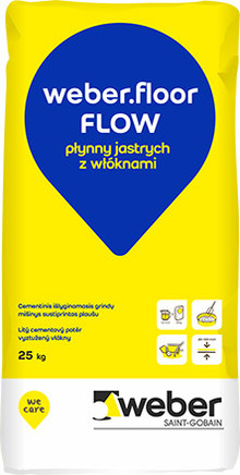 weber.floor FLOW jest płynnym jastrychem, łączącym zalety tradycyjnych jastrychów i wylewek samopoziomujących. Wyrób zbrojony jest włóknami polipropylenowymi a w wersji weber.floor RMX FLOW – dodatkowo konstrukcyjnymi makrowłóknami, które zastępują siatki stalowe. Chociaż podkład dostarczany jest na miejsce prac w postaci suchej mieszanki, to szybko staje się gotowy do aplikacji, dzięki łatwemu wymieszaniu z wodą.  Użyty pod powierzchnią przyszłej posadzki weber.floor FLOW okazuje się po wymieszaniu z wodą produktem doskonale rozlewnym, dzięki czemu nie musisz pracochłonnie wyrównywać poziomu jastrychu. Z kolei po związaniu wylewki nie będzie potrzebne zacieranie powierzchni.