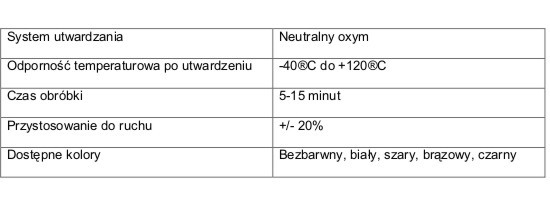 Polecany do elastycznego uszczelniania w szkleniu ram okiennych - wykonanych w szczególności z nowoczesnych materiałów (aluminium, tworzywa sztuczne, drewno).